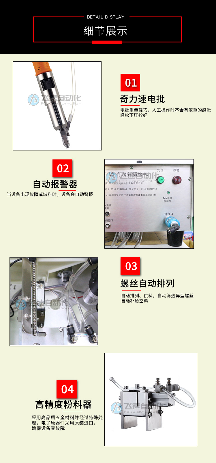 - 產(chǎn)品簡介: 螺絲機(jī)供料器也稱之為螺絲整列機(jī)、螺絲送料機(jī)、螺絲排列機(jī)等。當(dāng)前市場上主要是日本品牌和國產(chǎn)品牌占據(jù)市場主導(dǎo)地位,價格差異較大。根據(jù)國內(nèi)市場的發(fā)展和各螺絲機(jī)生產(chǎn)廠家技術(shù)的不斷完善,國內(nèi)少部分廠家的品質(zhì)完全已經(jīng)達(dá)到進(jìn)口產(chǎn)品的品質(zhì)!依托其螺絲鎖付自動化的技術(shù)背景開發(fā)出垂直電批支架、螺絲鎖付控制系統(tǒng),結(jié)合其螺絲排列機(jī)使用,可完全實現(xiàn)螺絲鎖付過程中漏鎖、浮鎖、滑牙、計數(shù)等功能,完全不同于市場上所謂計數(shù)螺絲機(jī),可真正意義上實現(xiàn)上述功能!